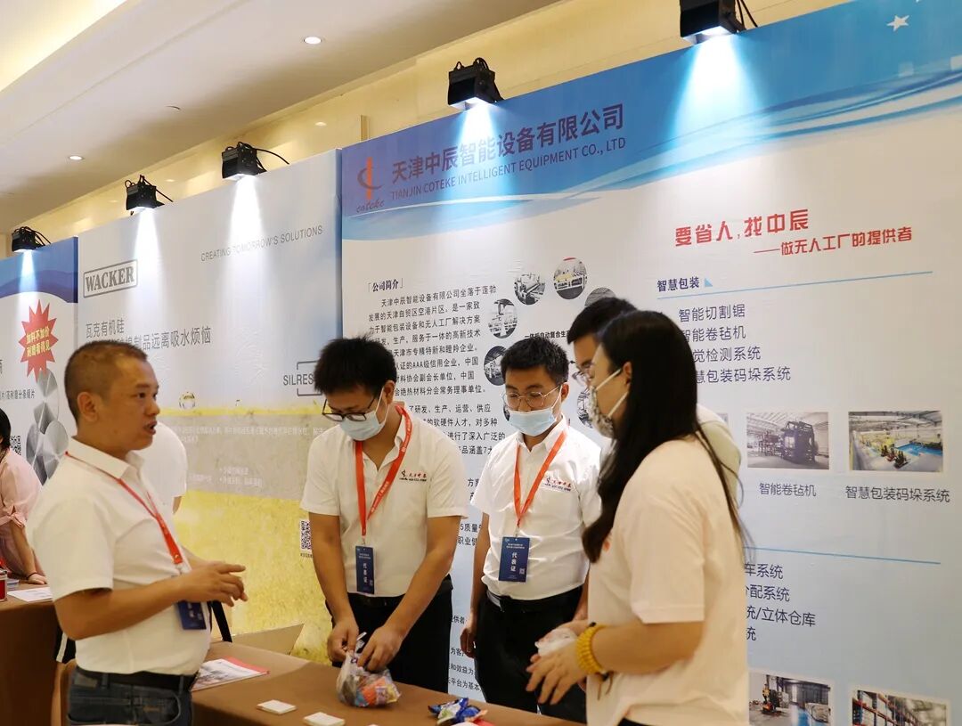 中规创伟(北京)外墙保温科技有限公司技术总监乔林介绍了新型隔离式纳塑保温板系列产品的技术特点,展示了其在不同系统应用情况,特别是隔离式纳塑光伏一体板将保温材料配合光伏发电面板,成功的将建筑外立面转变成发电系统,为实现提升新能源发电的比例、为实现国家“双碳”战略目标做出贡献。8、《岩棉冷端智慧包装和无人仓库的解决方案》专题报告——叶章全天津中辰智能设备有限公司董事长叶章全展示了最新研发的新一代智能化岩棉包装和无人仓储解决方案,方案非常符合当前岩棉等产业向高质量发展转型、建设信息化和智能化工厂的需要。