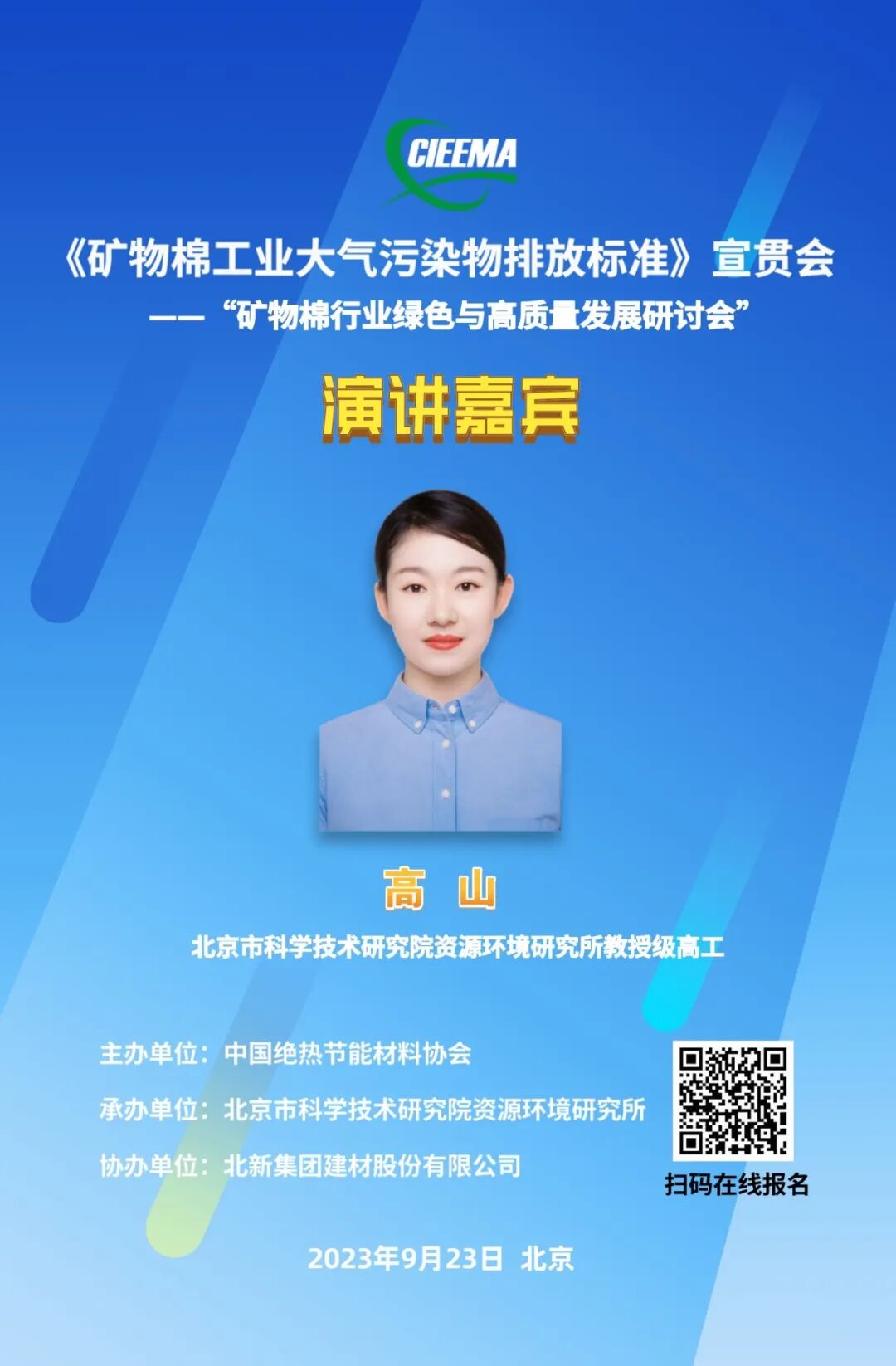 为及时梳理总结矿物棉行业环保政策制度和规范要求的新进展、新动向,进一步提升矿物棉行业绿色发展能力和技术水平,推动岩棉、玻璃棉企业对国家最新《矿物棉工业大气污染物排放标准》(GB 41617—2022)的理解和落实,规范落实企业环保责任,中国绝热节能材料协会定于2023年9月23日在北新科学院举办《矿物棉工业大气污染物排放标准》宣贯会暨“矿物棉行业绿色与高质量发展研讨会”,现将有关事项通知如下: