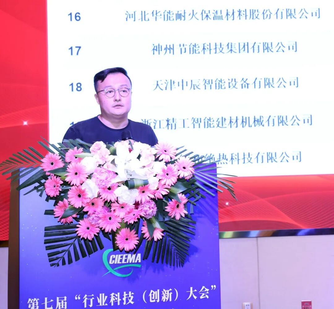协会专家委员会主任孙诗兵宣读《关于认证并颁发“新一代泡沫玻璃技术装备生产示范线”牌证的议案》。经理事会审议通过后,韩继先为德和科技集团股份有限公司颁发“新一代泡沫玻璃技术装备生产示范线”铜牌,德和科技集团股份有限公司总经理管金国上台领牌。