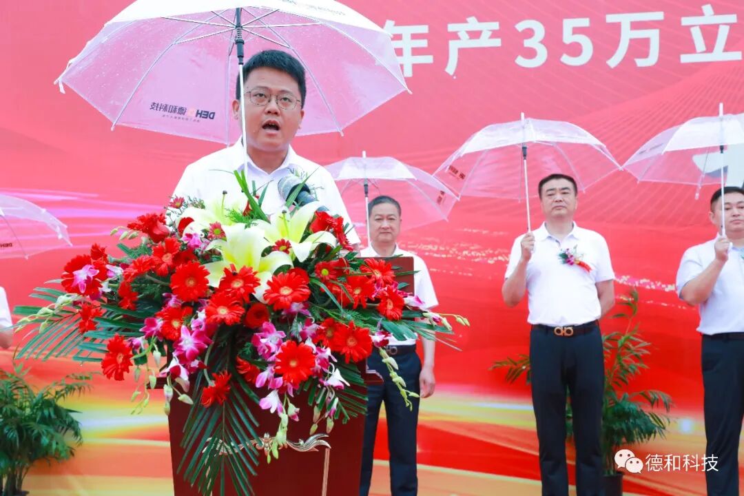 宣城高新区党工委员、武装部长夏伟致辞祝贺安徽德和开工。宣城区政府党组成员、宣城高新区党工委书记、管委会主任赵流海宣布:安徽德和绝热科技有限公司“年产35万立方米保冷材料项目生产基地开工!礼炮奏响,彩旗飘飘。现场一片欢腾。