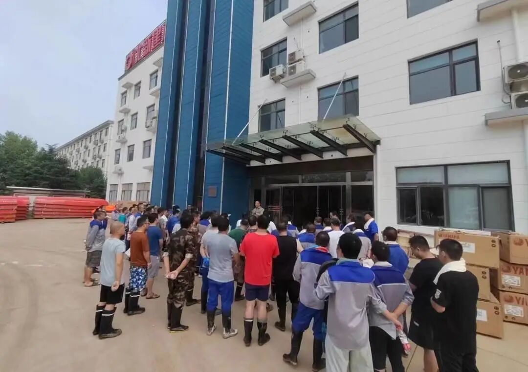 龙牌集团河北大区销售人员从石家庄送来两台发电机、4台抽水泵、60双雨鞋、20件矿泉水、面包等物资;保定的经销商开着货车运来了叉车、烧火用的灶锅和一些热水,并把货车和叉车都留了下来,保障工厂清理工作和运输车辆需要。