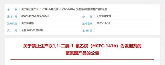 二、自2026年7月1日起,禁止生产以HCFC-141b为发泡剂的喷涂聚氨酯泡沫产品。
