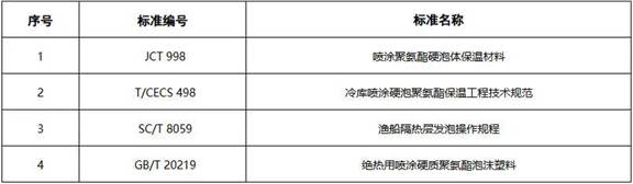 附件:喷涂聚氨酯泡沫产品范围适用标准清单