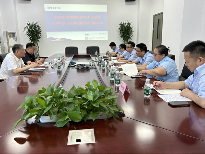 2025年6月5日,中国绝热节能材料协会执行会长兼秘书长韩继先、副秘书长刘亚丹走访、调研北京建筑材料检验研究院股份有限公司(以下简称“北京检验”)并进行交流座谈。北京检验总经理谷秀志、总经理助理冯秀艳博士以及北京检验防火与保温检验事业部经理王聪等热烈欢迎韩会长一行,并陪同调研活动。